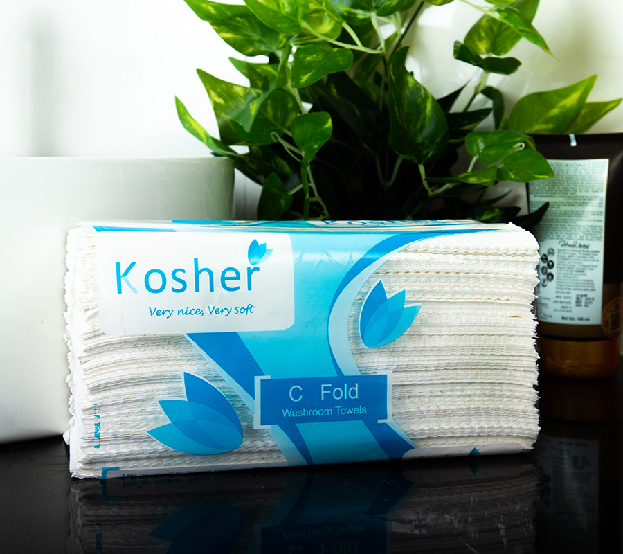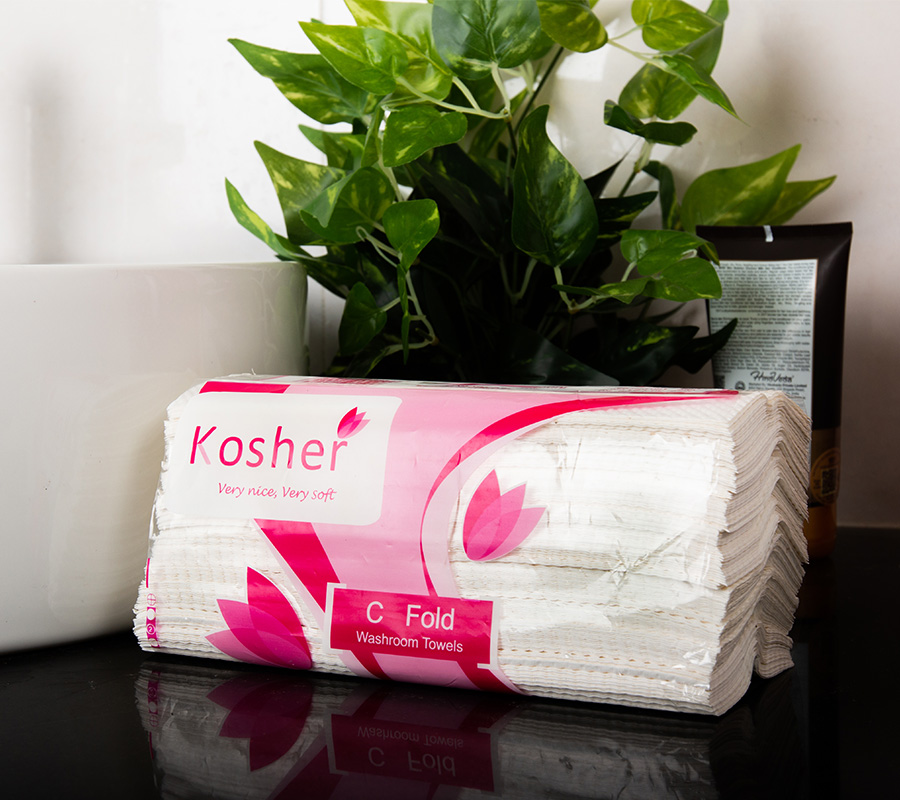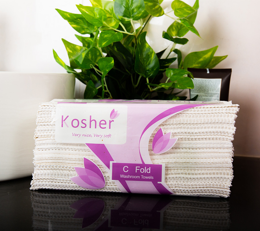 Kosher C Fold Tissues are more suitable for use at washrooms attached to canteens, restaurants, Hospitals, Diagnostic centres and at washrooms in work facilities requiring such tissues.
