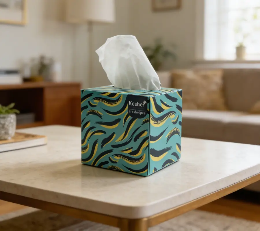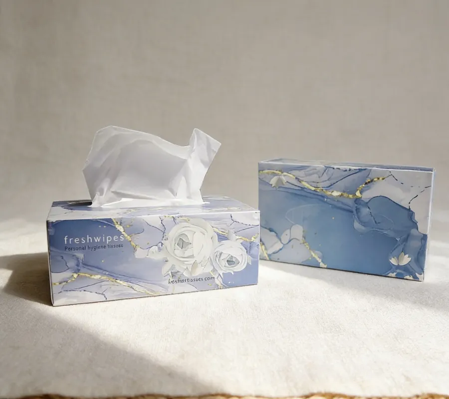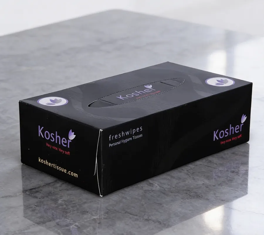 Kosher ‘Ultra White’ range of freshwipes tissue boxes contain very supple and smooth personal hygiene Kosher ‘freshwipes’ and are presented in ‘Pull-a-Piece’ boxes made of Ultra White superior quality paper boards making the boxes very white, bright and sturdy.