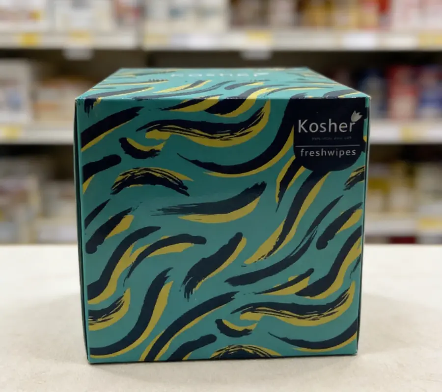 Kosher Fresh Wipes are packed in ‘pull-a-piece’ boxes. The boxes are presented with attractive designs with varying themes to suit the usage situation and are objectively designed to surcharge the mood of the user - as appealing to different age groups and use situations.