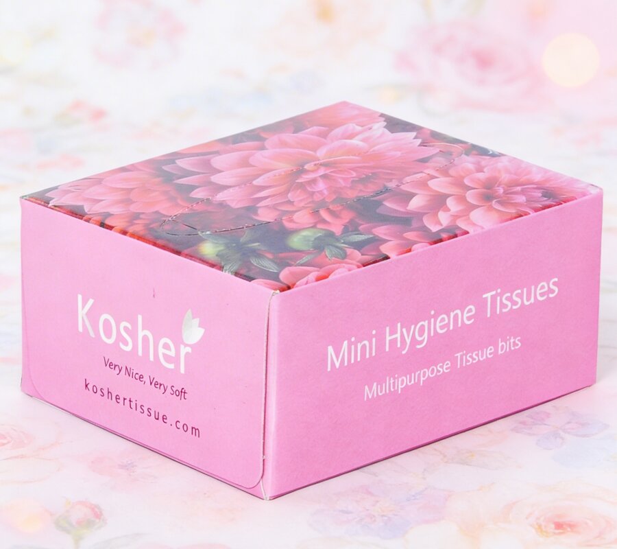 Kosher Mini Hygiene Tissues are made from virgin paper tissue and are very soft and supple. Mini Hygiene Tissues are called so for the multi-purpose usage possibility these handy little ‘pull-a-piece Boxes’ offer. Yes, keep it anywhere and use it on any purpose.
